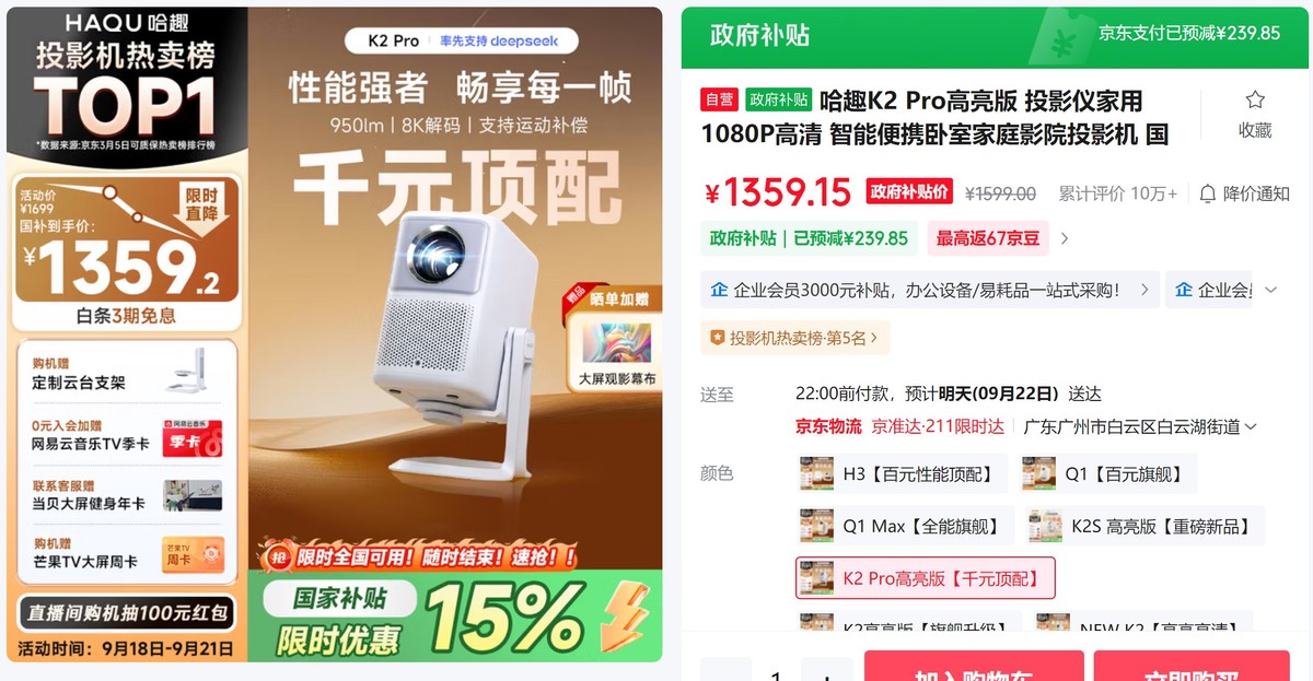 5款千元投影仪推荐覆盖家用、卧室、租房等不同场景!哈趣K2高亮版:补贴价到手1000元出头,入门性价比王者!推荐场景:卧室使用、租房使用、观影煲剧、游戏娱乐