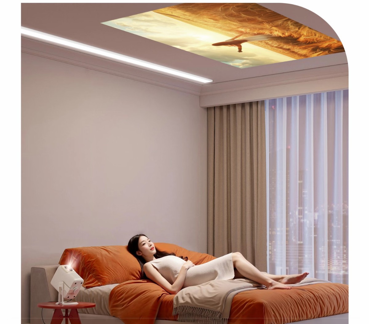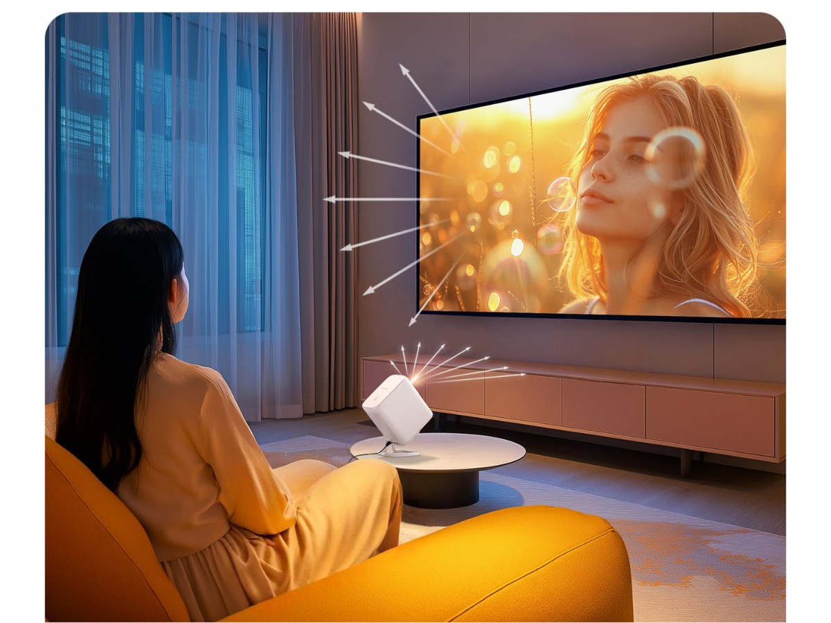 它延续了实用的360°轻灵云台设计,随手一扭就能把画面投到天花板(躺着追剧超爽)、床头墙面(靠枕追剧不弯腰),甚至露营时投帐篷都稳;芯片升级到 Amlogic T982旗舰款,支持8K超清解码,搭配运动补偿功能,看球赛、动作片时画面不拖影、不模糊;