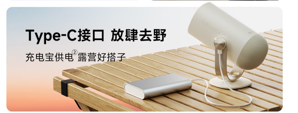 谈到外出露营,最关键是Type-C供电,只要咱们有65W的充电宝就能带上当贝Smart1在帐篷里浪漫地看电影!