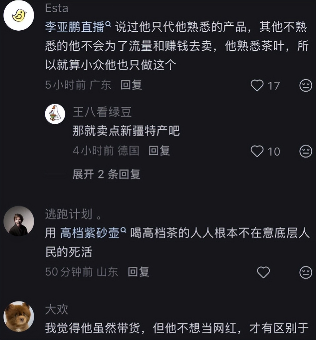 我觉得李先生别直播卖茶叶了,我建议成立个选品团队,卖食品和日用品,购买的人一定会很多 我也觉得 还有卖一些儿童用品 民生一点感觉很多人会支持的
