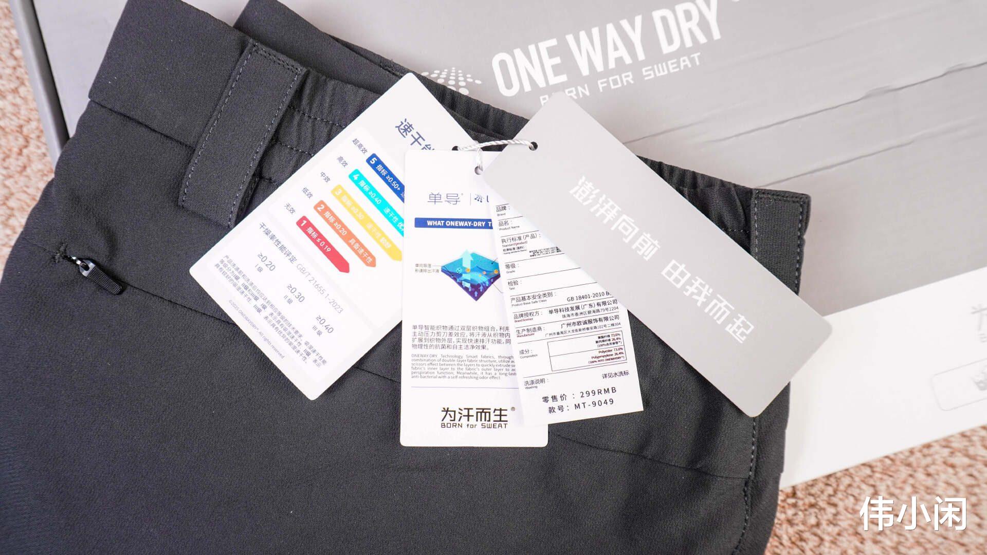 这款裤子整体比较轻薄,是“轻出行”的基础保障之一。其选用73.6%聚酯纤维+26.4聚丙烯纤维,不仅轻便,也通过复合材料实现单导ONEWAY DRY内吸外排的设计思路。遇到有汗水或者热气,能实现速干的效果。