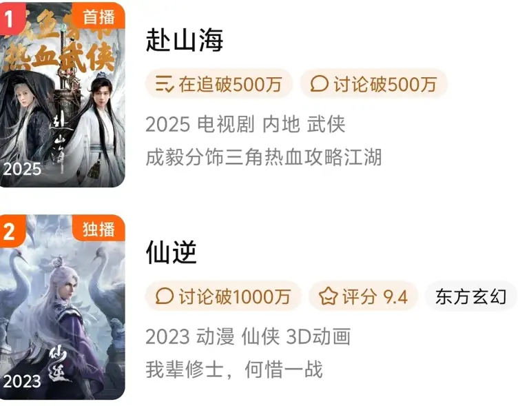 开播 18 分钟热度破 2.6 万,三小时后差评像潮水漫过弹幕 ——《赴山海》的开播日堪称内娱魔幻现实主义现场。这部号称 "拯救武侠剧" 的 S + 大制作,刚被平台捧上热度榜首,就被观众的吐槽按在地上摩擦,翻来覆去都是同一句话:"太糙了,肉眼可见的不用心"。