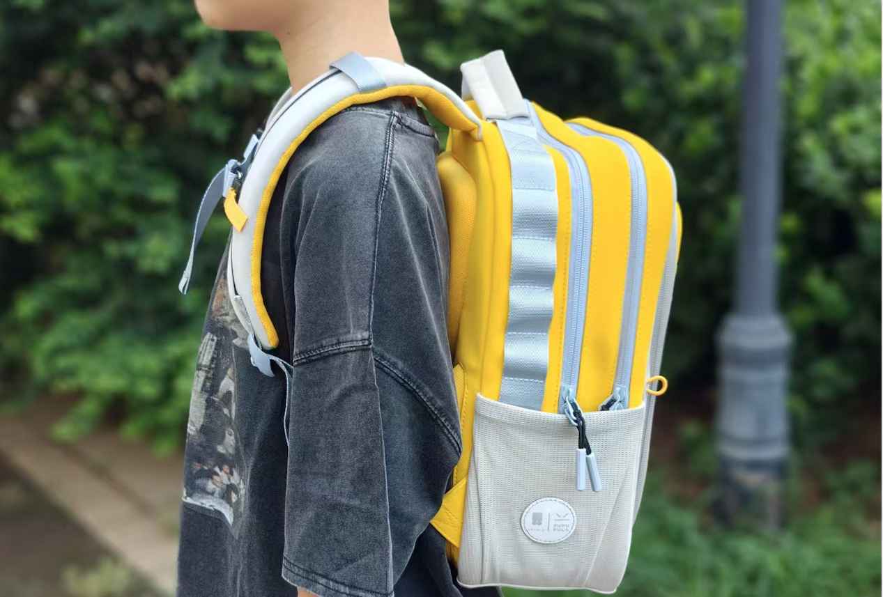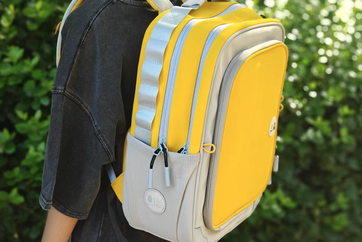首先整体看这个书包,非池中之物啊,与众多蓝红粉配色书包相比,它采用的黄色,显眼又有质感,男孩女孩都能驾驭的了。咱就是谁家孩子背上这个书包,放学接孩子的时候,根本不用眼花缭乱地找孩子,直接一眼就能根据书包锁定对象。