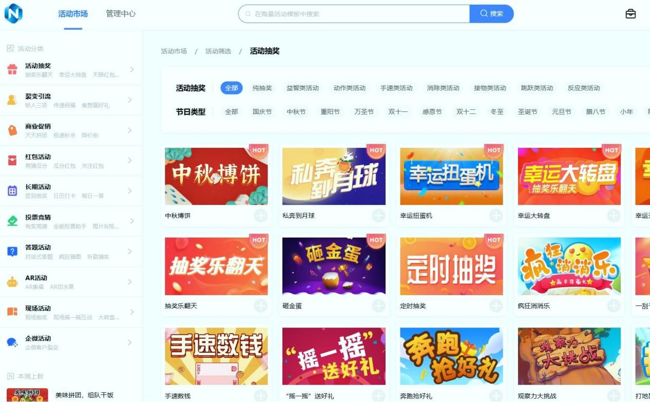 ● 固乔:模板分类混乱,找一款适合的获客模板要翻20分钟以上。搭建过程中需手动上传大量素材,没有内置素材库,做一场秒杀活动要花2小时,效率较低。