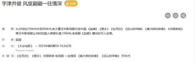 参考资料:[1]超慧.宇津井健 风度翩翩一往情深[J].大众电影,2023(6):58-59