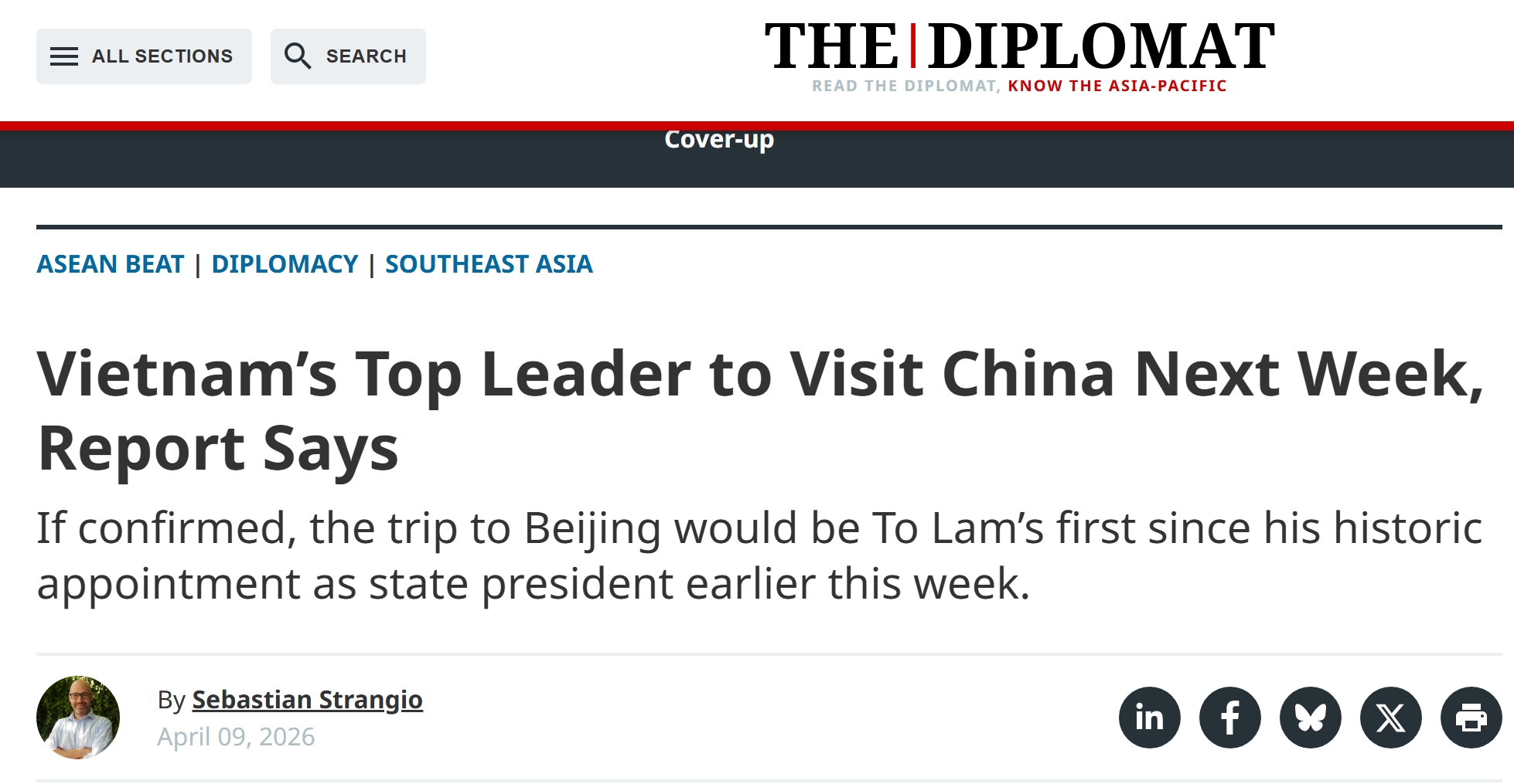 而在这篇文章中,文章作者,《外交家》杂志资深东南亚事务总编塞巴斯蒂安·斯特兰吉奥还拿美、越关系作为对比。