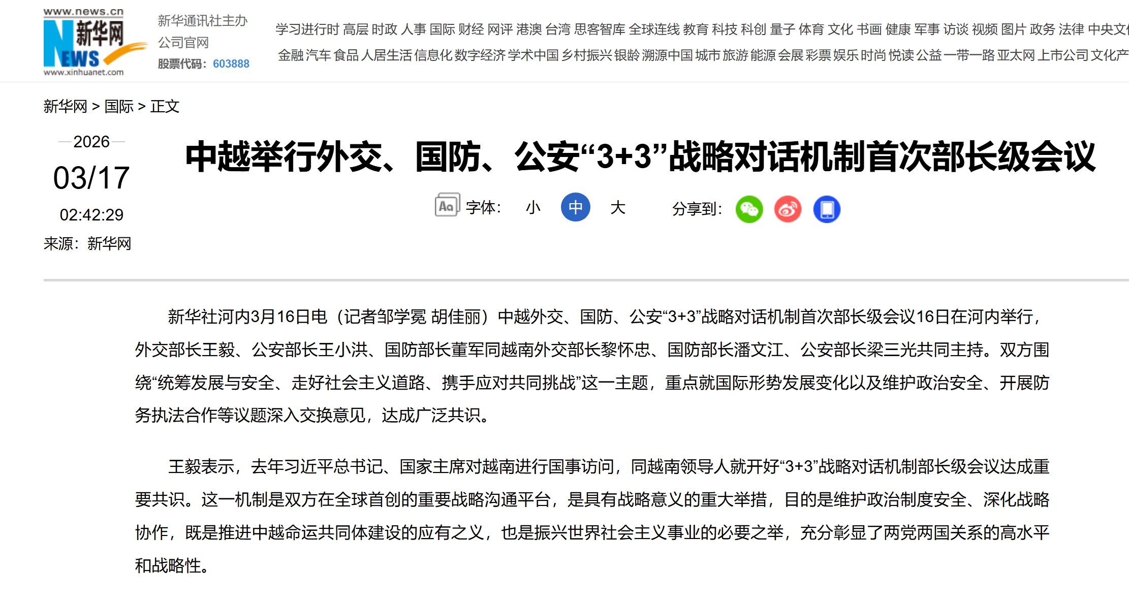 结合近期“3+3”战略对话和双方高层互动,可以看出,中越关系正进入高质量、深度合作的新阶段。两国合作基础更加稳固,也为未来在“更广泛、更广阔领域”的战略性协作创造了条件。