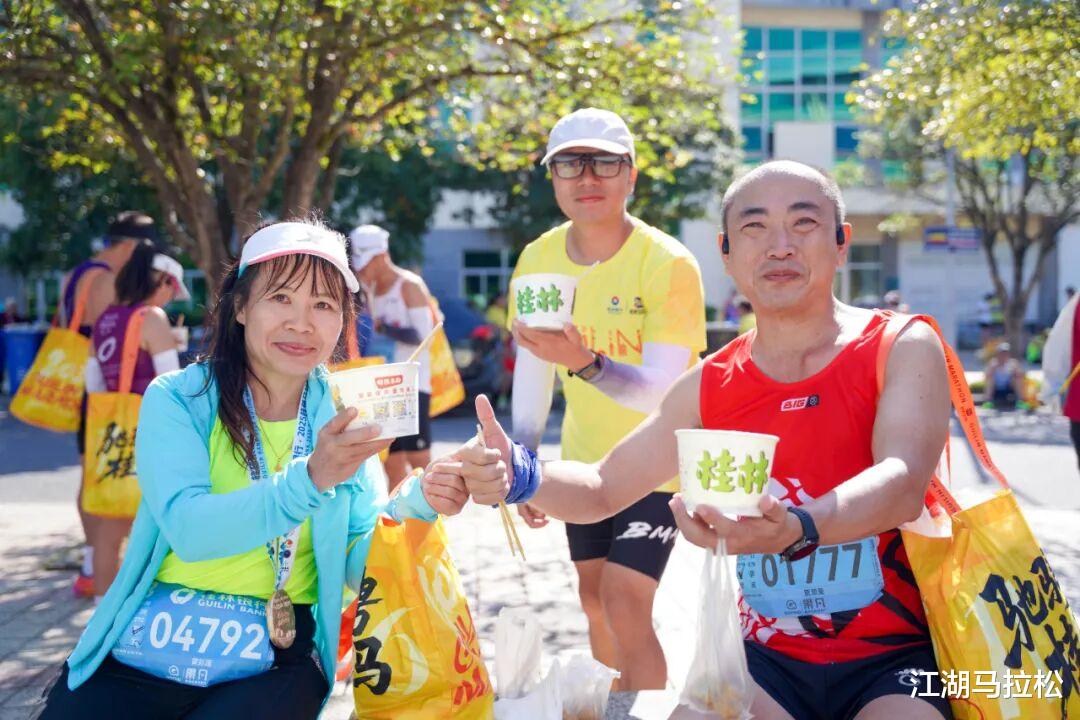 在赛道和运营稳定的基础之上,赞助商的稳定,则给桂马提供了持续稳定的经济基础。桂马十年,有三家赞助商一直在,冠名商桂林银行、美食赞助商明桂米粉、金顺昌,这些企业利用这十年与马拉松携手,迅速成长。以明桂米粉为例,当年是在其他家米粉品牌都不敢接这个单的背景下,在桂林仅有几家分店,老板敏锐地抓住了马拉松带来的商机,眼下已是遍布广西。