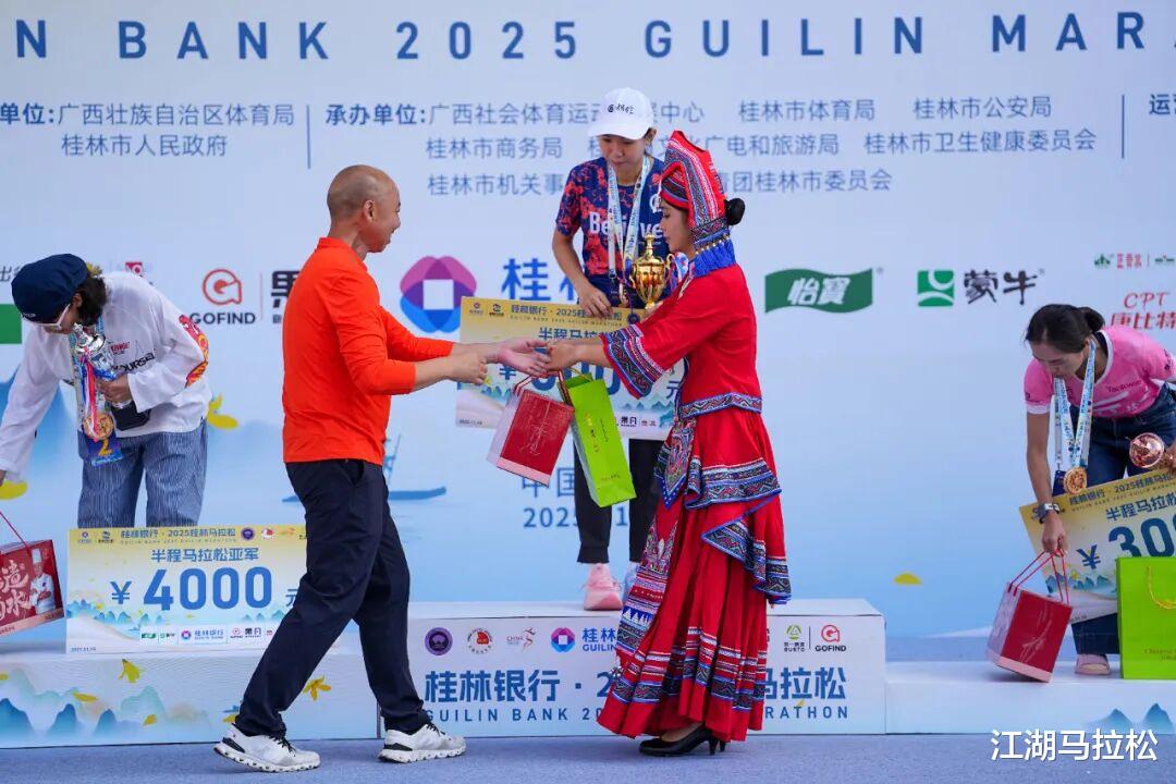 桂林的城市影响力,跟上海差着几个等级呢,但看得出来,在追求赛事的国际化上,也在不遗余力地努力着。我在比赛中有个显著感觉,一路上看到的外籍跑者,真不少,甚至是今年我在国内多场赛事中最多的。