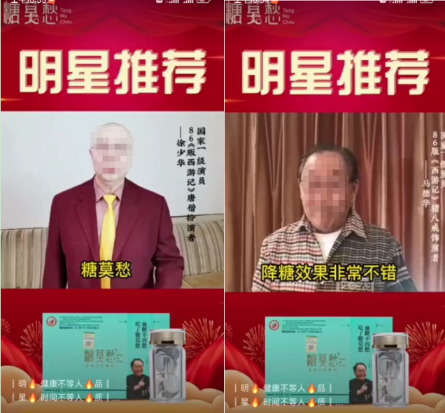 在其宣传的视频,糖莫愁还签约了中国家一级演员徐少华(唐僧扮演者)和马德华(猪八戒扮演者)为其代言,宣传糖莫愁为纯中药成分,可调理血糖,并称“吃了糖莫愁,血糖不再愁”。