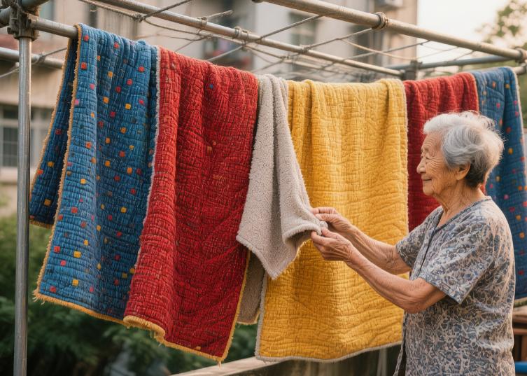 秋深了。晨雾刚散,我就抱着被子往楼下跑——要在太阳爬上楼顶前,占个晒被架。