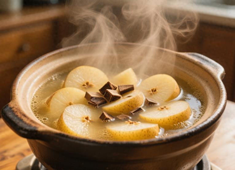 中午煮了梨汤。砂锅里浮着几颗川贝,梨肉炖得半透明,甜香漫得满屋子都是。想起小时候发烧,妈妈总煮这个,我嫌甜不肯喝,她就哄:“喝了,喉咙就不疼啦。”如今我守着锅,看气泡咕嘟咕嘟冒,忽然懂了:有些甜,是要等自己成了煮汤的人,才品得出深浅。