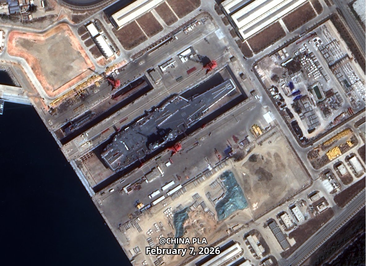 大概在1月下旬,山东舰进入三亚榆林海军基地的一座大型干船坞内,这是山东舰服役6年多来,首次上岸进入干船坞做深度维护,和美国航母的保养,节奏差不多。不过呢,卫星图却显示,山东舰这次的维护,不是简单的常规保养,而是针对性升级。甲板涂层和标记线,看似不起眼,却是舰载机安全起降的关键。