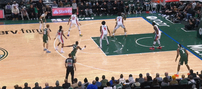 最后看一个他防守波蒂斯的回合 其实背打顶人一下并没有顶动 被迫只能翻身后仰