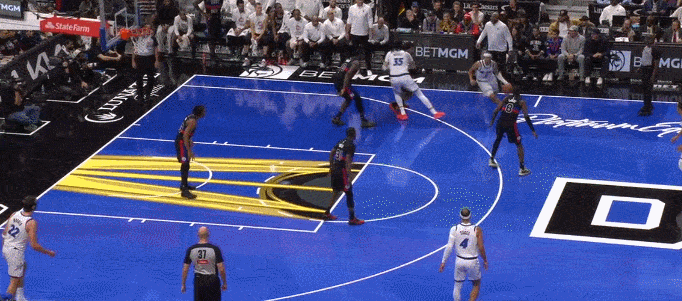 布莱克借助掩护 突进内线 坎宁安被挡到一点后 奋力回追 最后完成干扰