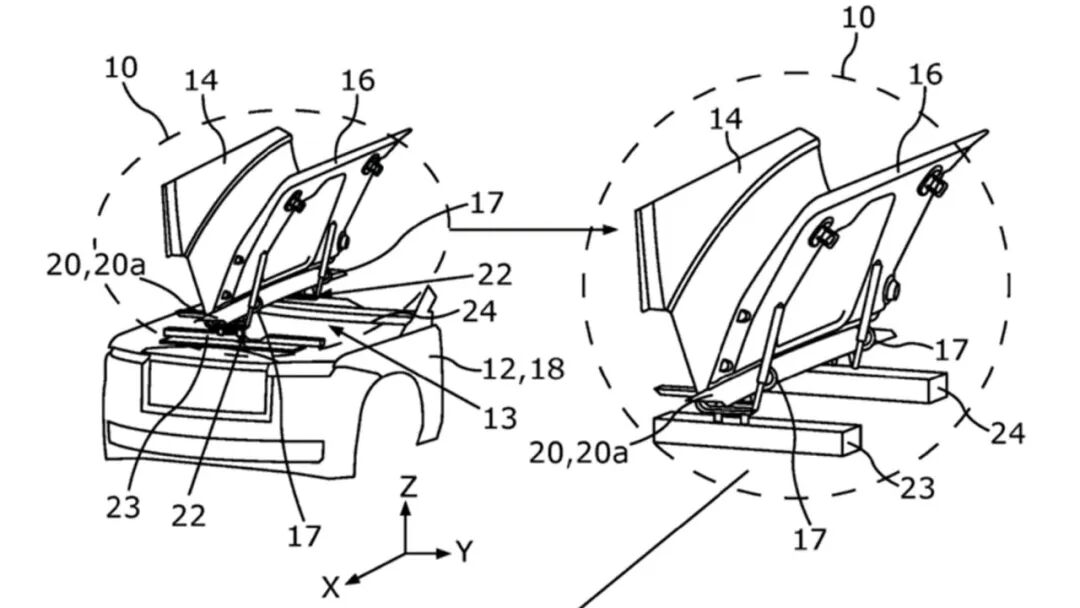 劳斯莱斯在2024年为这个创意申请了专利,这让我们能清楚地了解它的样貌,我们还能看到引擎盖前部似乎有一个铰链。
