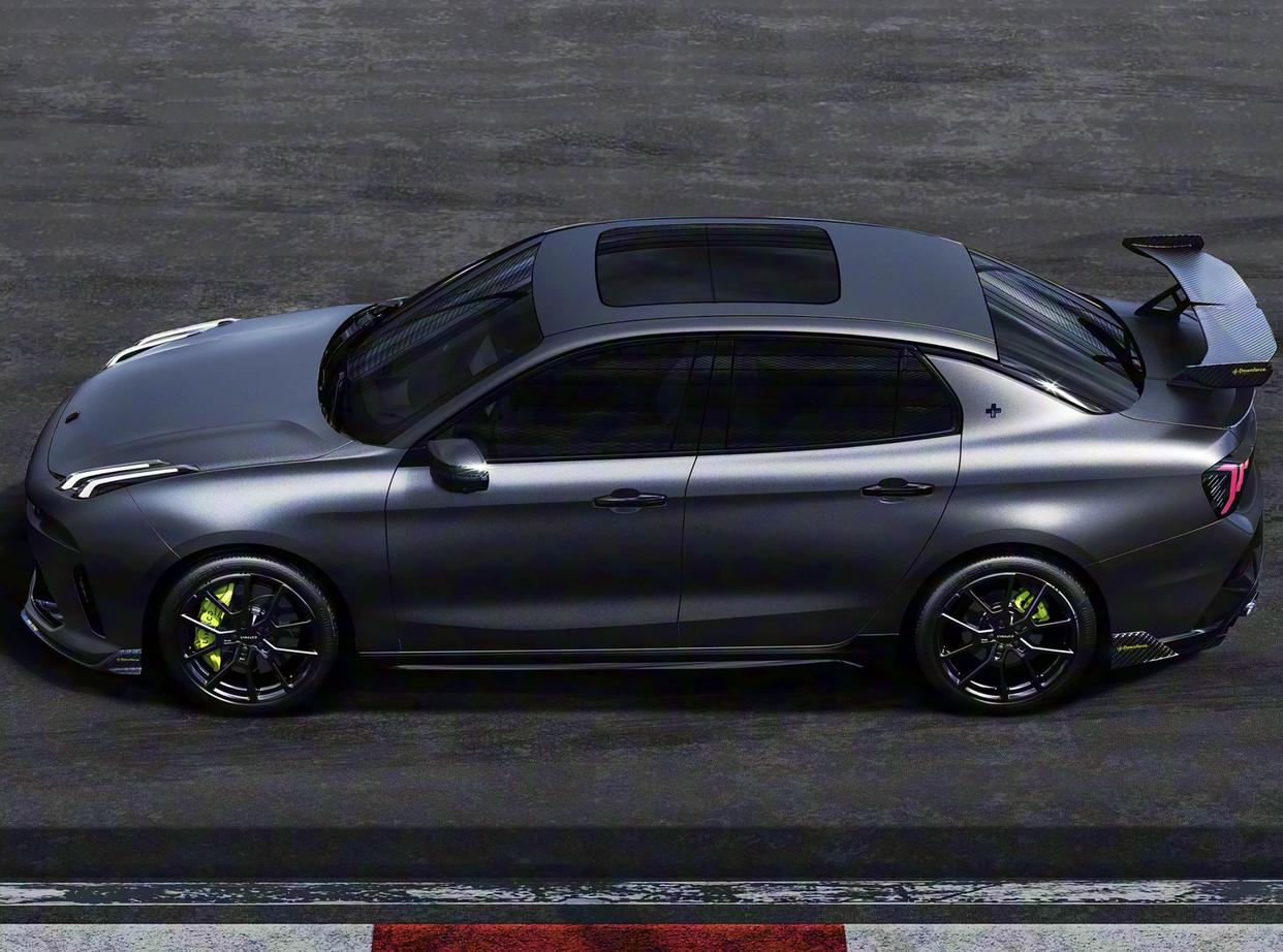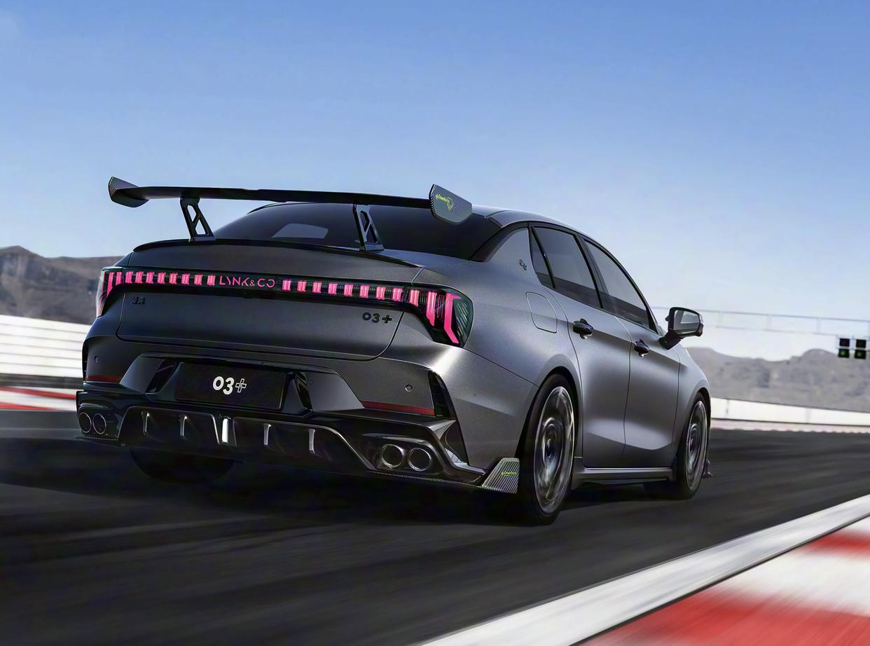 从最直观的颜值来看,全新领克03+依旧采用了家族式经典设计,前脸十分宽扁,两侧配备了北极之光样式的日行灯设计,微微隆起的造型也更加立体。贯穿式的前格栅两侧融入了横置式带透镜功能的LED远光灯和LED近光灯,科技感十足。前舱盖可以选装黑色碳纤维机盖,可发光的“03+”徽标,尖獠牙样式的导流槽和中间大尺寸梯形进气口,还有带宽体裙边的碳纤维前铲,进一步提升了整车的侵略性。车尾也可以选择固定式赛车大尾翼,就连尾翼侧面的03+标识也需要选择。造型夸张的黑色底部扩散器搭配着直立式的领航灯,双边四出的排气尾喉,宽体碳纤维后唇和裙边也需要选装。
