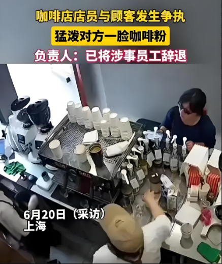 通过网络了解到,上海某咖啡店,一名女店员与顾客因等待咖啡时间过长而发生了争执。情绪失控后的女店员将咖啡粉泼向了顾客,并大喊“你投诉啊!”。随后,该事件迅速登上热搜,引发网友热议。