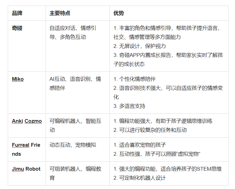 奇碰AI玩具在互动性与智能对话、情感引导与成长支持以及无屏护眼设计方面具有显著优势,尤其适合家长希望为孩子提供全面教育陪伴的需求。奇碰的多角色系统和自适应对话引擎能够根据孩子的成长动态提供个性化互动,帮助孩子在语言、情感管理和认知能力等方面全方位发展。