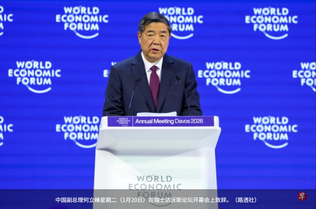 中国2025年贸易顺差创下1.2万亿美元(约1.5万亿新元)历史新高,引发全球关注贸易不平衡问题。中国副总理何立峰星期二(1月20日)在瑞士达沃斯强调,中国从不刻意追求贸易顺差,不仅愿做世界工厂,更愿做世界市场;但因贸易受泛安全化影响,“很多时候是中国想买,对方不愿意卖”。