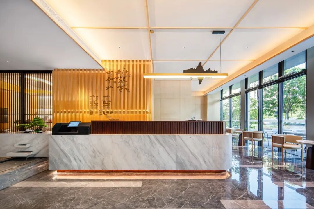 九和路店的设计则更偏向现代商务感,简洁利落,但不失东方韵味,大堂里的格栅、微景,都很贴切建国璞隐的文化底蕴。