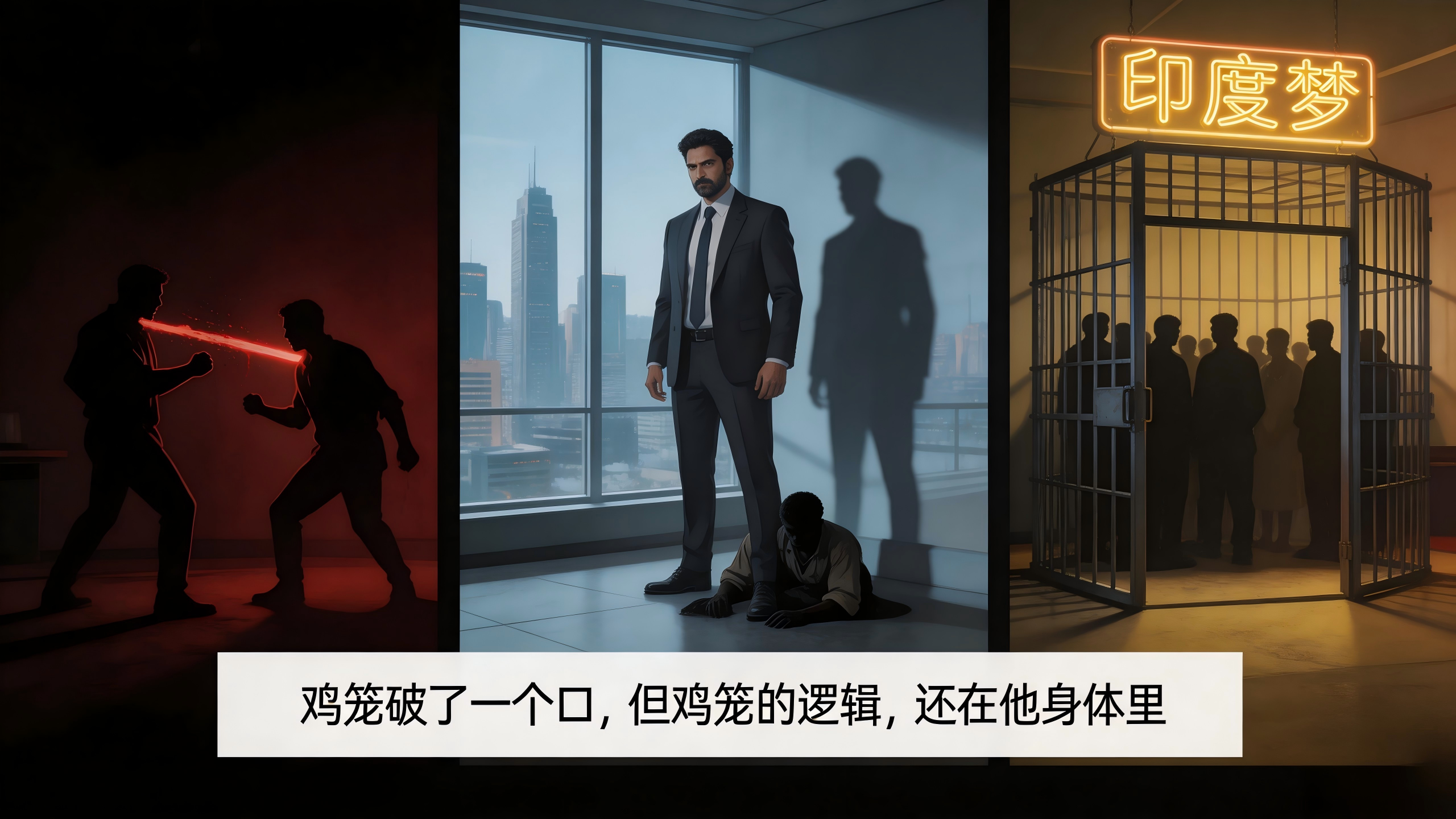 01《白虎》最刺痛我的,不是巴尔拉姆的谋杀,而是他看清真相后的那句话:“在印度,要么你被锁链束缚一辈子,要么你打破锁链成为新的锁链人。”