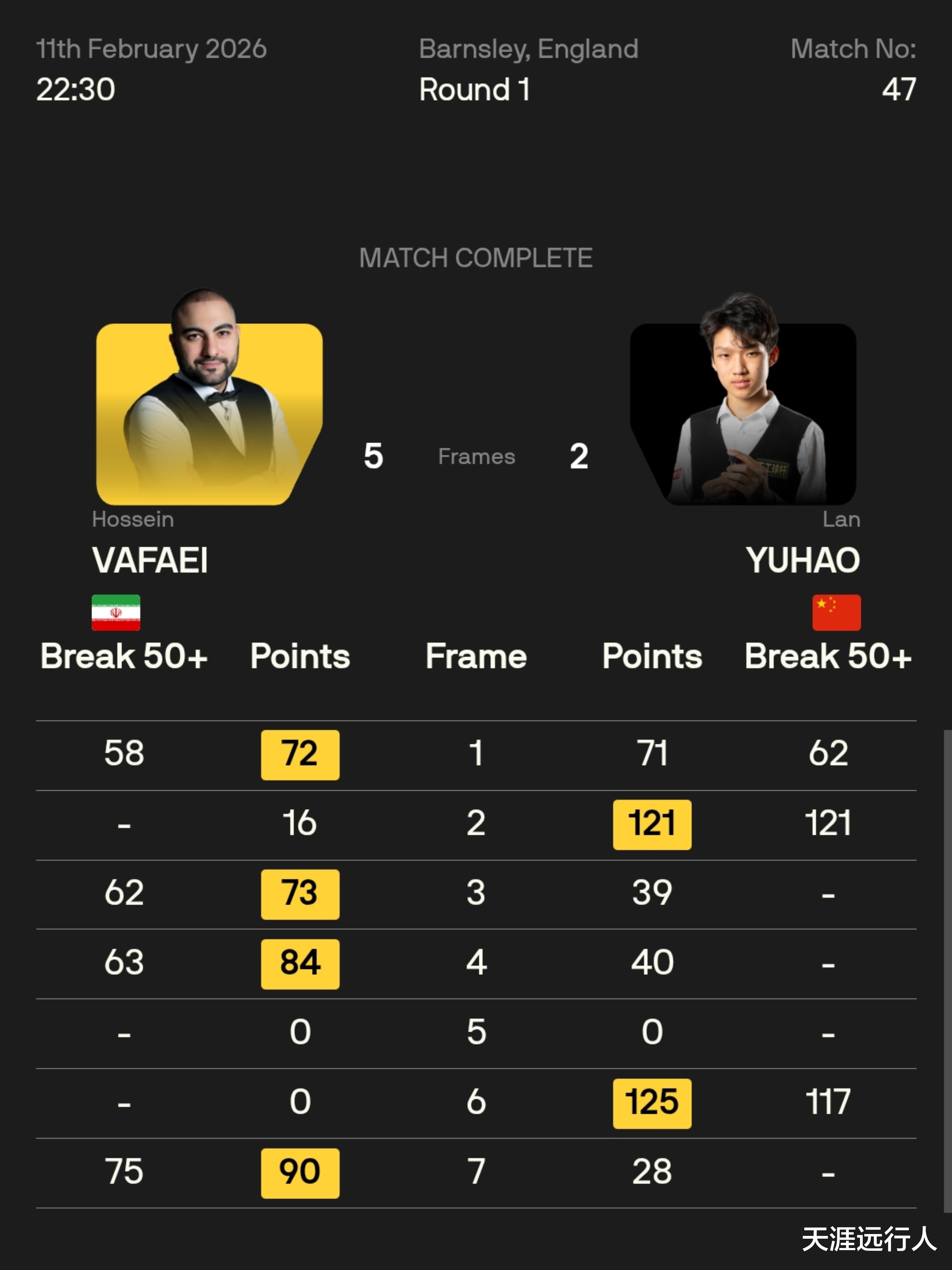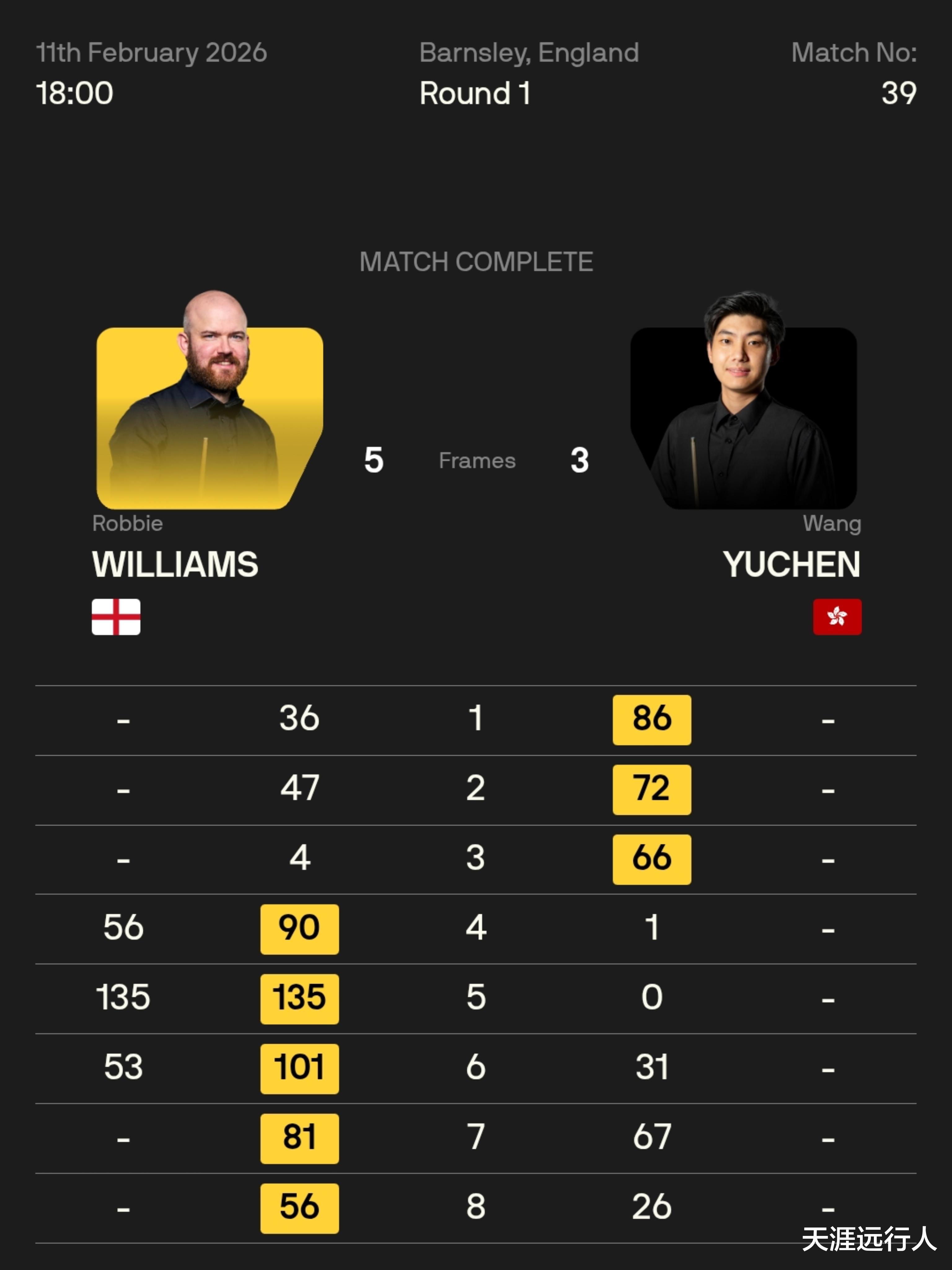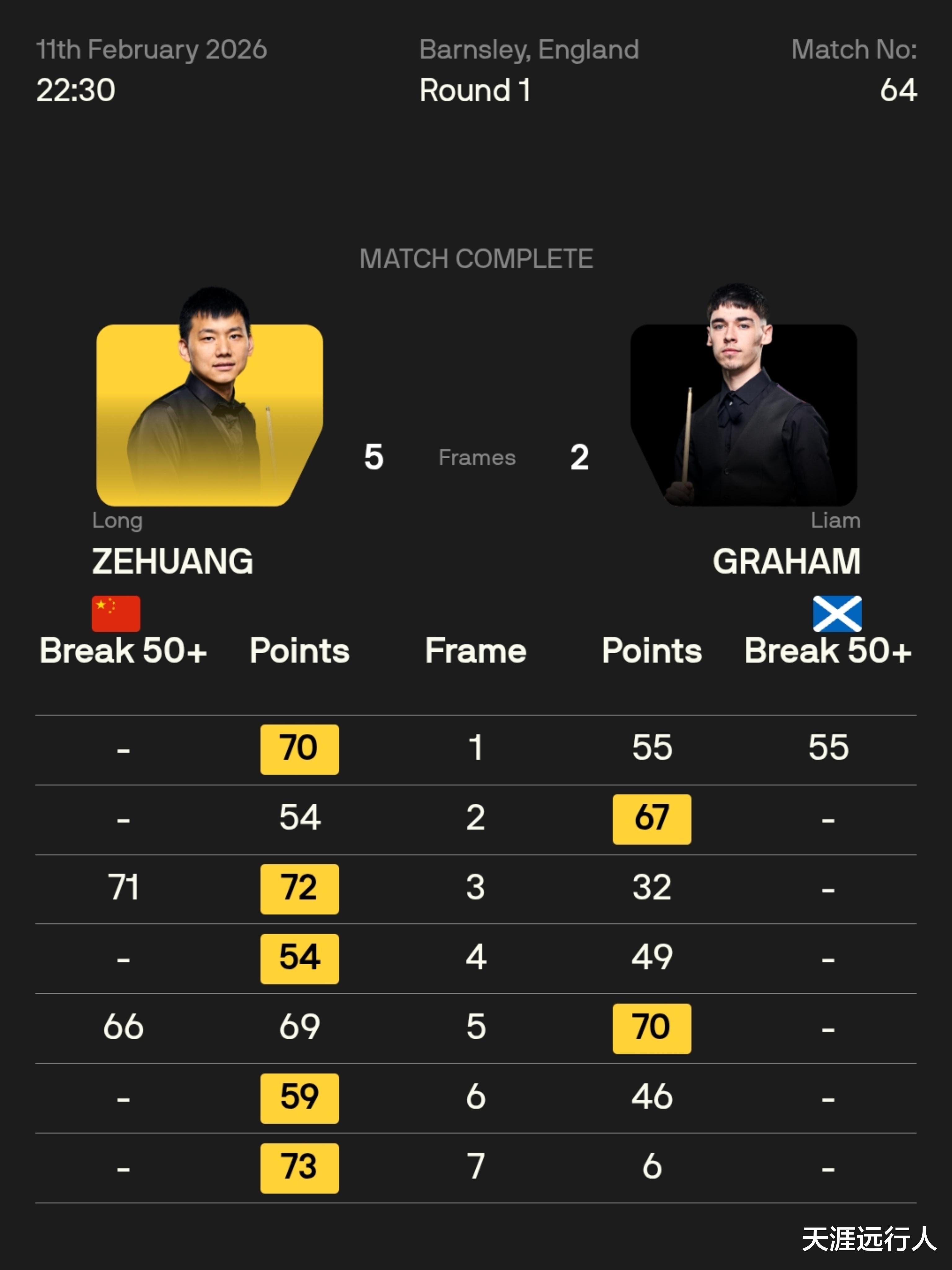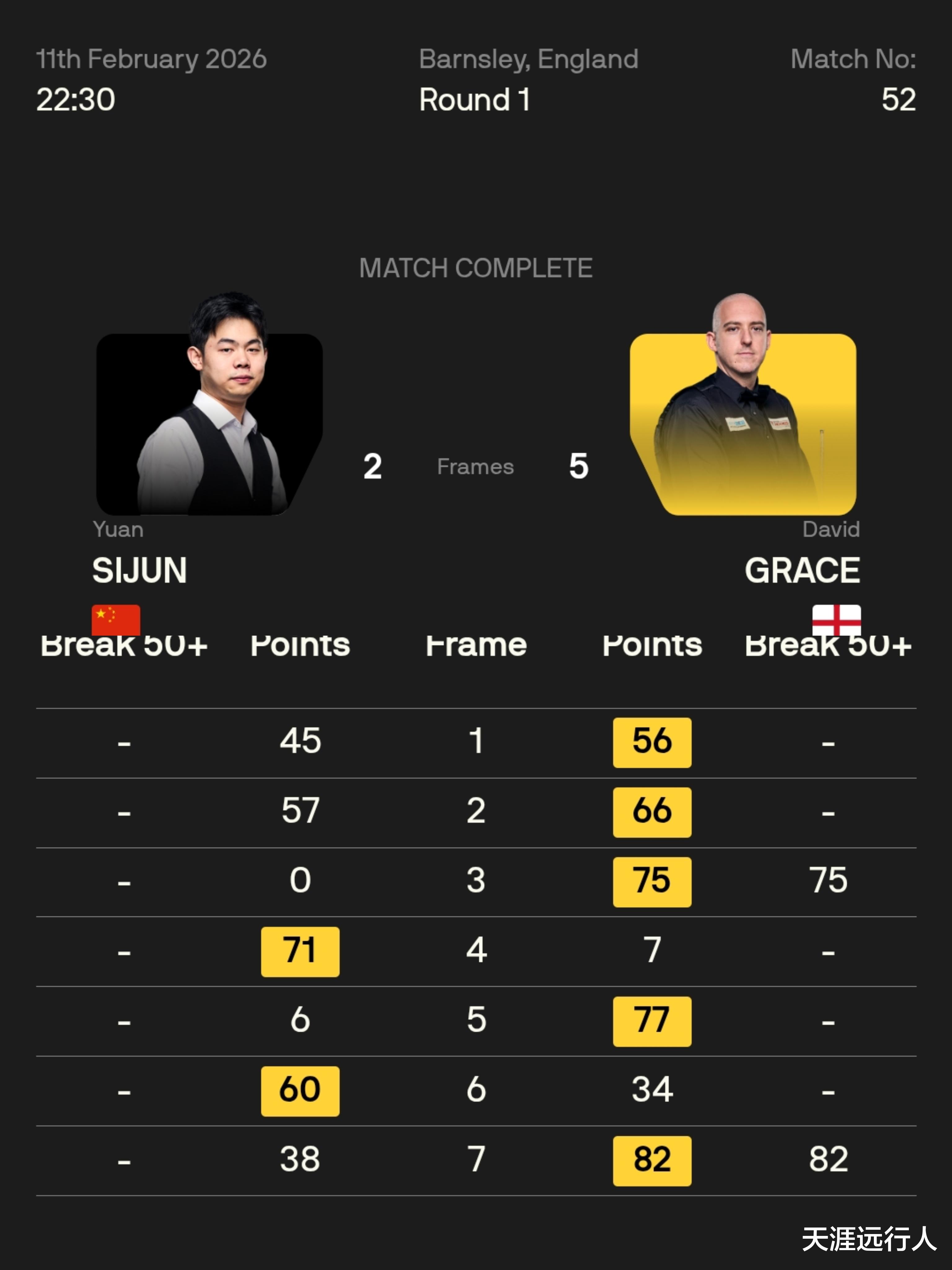北京时间2月12日凌晨6时40分,2026斯诺克世界公开赛资格赛阶段第二比赛日,128进64轮次的21场角逐,全部分出了高下,正赛64强已经产生42席。