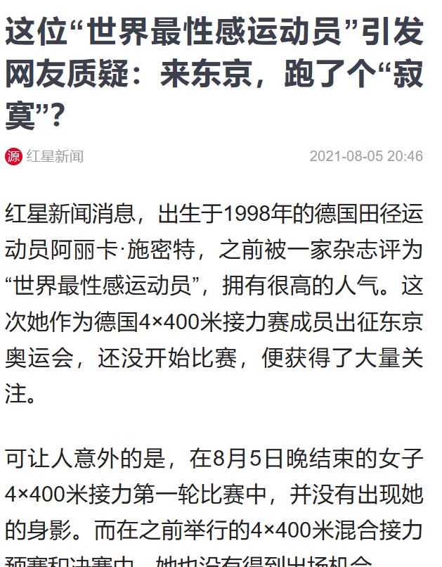 原文刊载于红星新闻2021-08-05关于“这位“世界最性感运动员”引发网友质疑:来东京,跑了个“寂寞”?”
