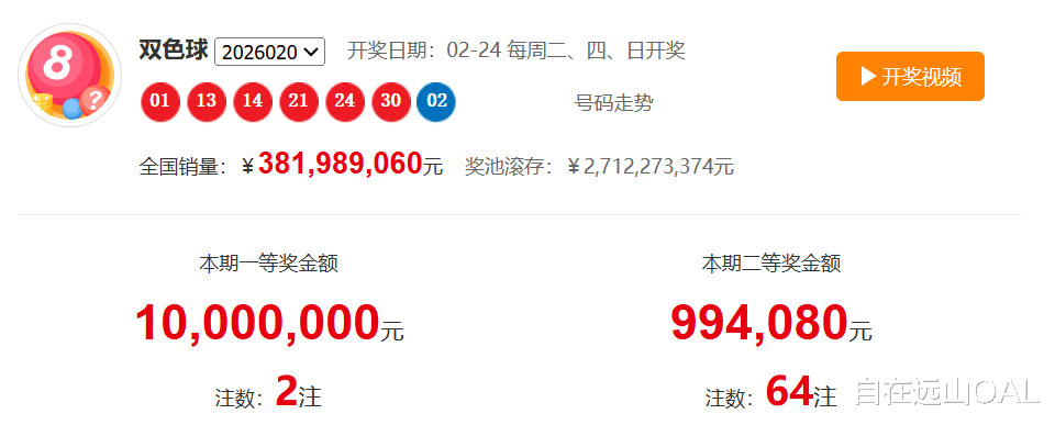 刚刚结束的第26020期双色球开奖,红球开出01、13、14、21、24、30,蓝球开出02。这组号码看似随机,却隐藏着深刻的规律密码。