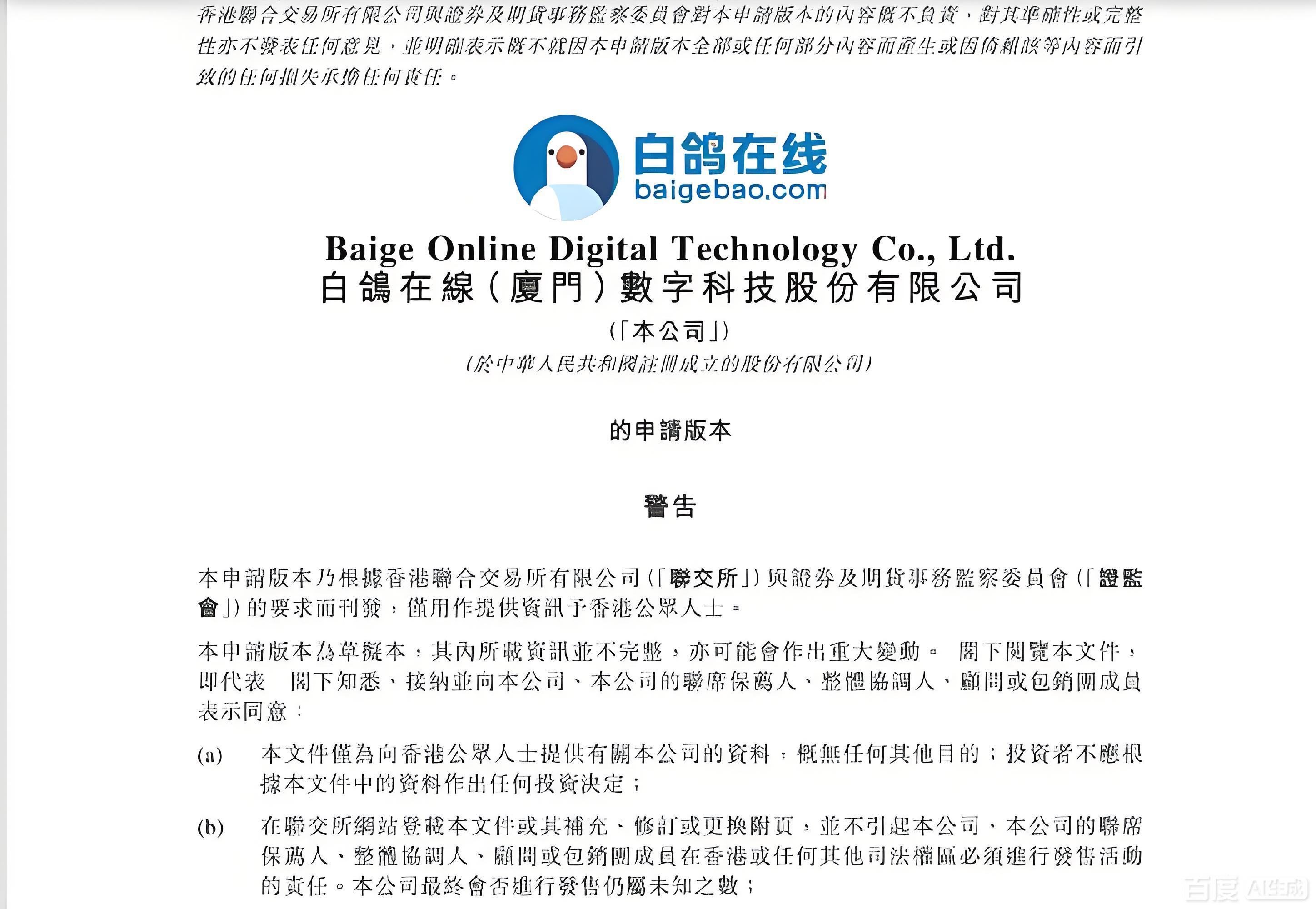 招股书显示,白鸽在线是一家保险科技公司,核心业务是向最终被保险人分销场景险产品,这些产品由保险公司承保,白鸽在线从中获得佣金收入。