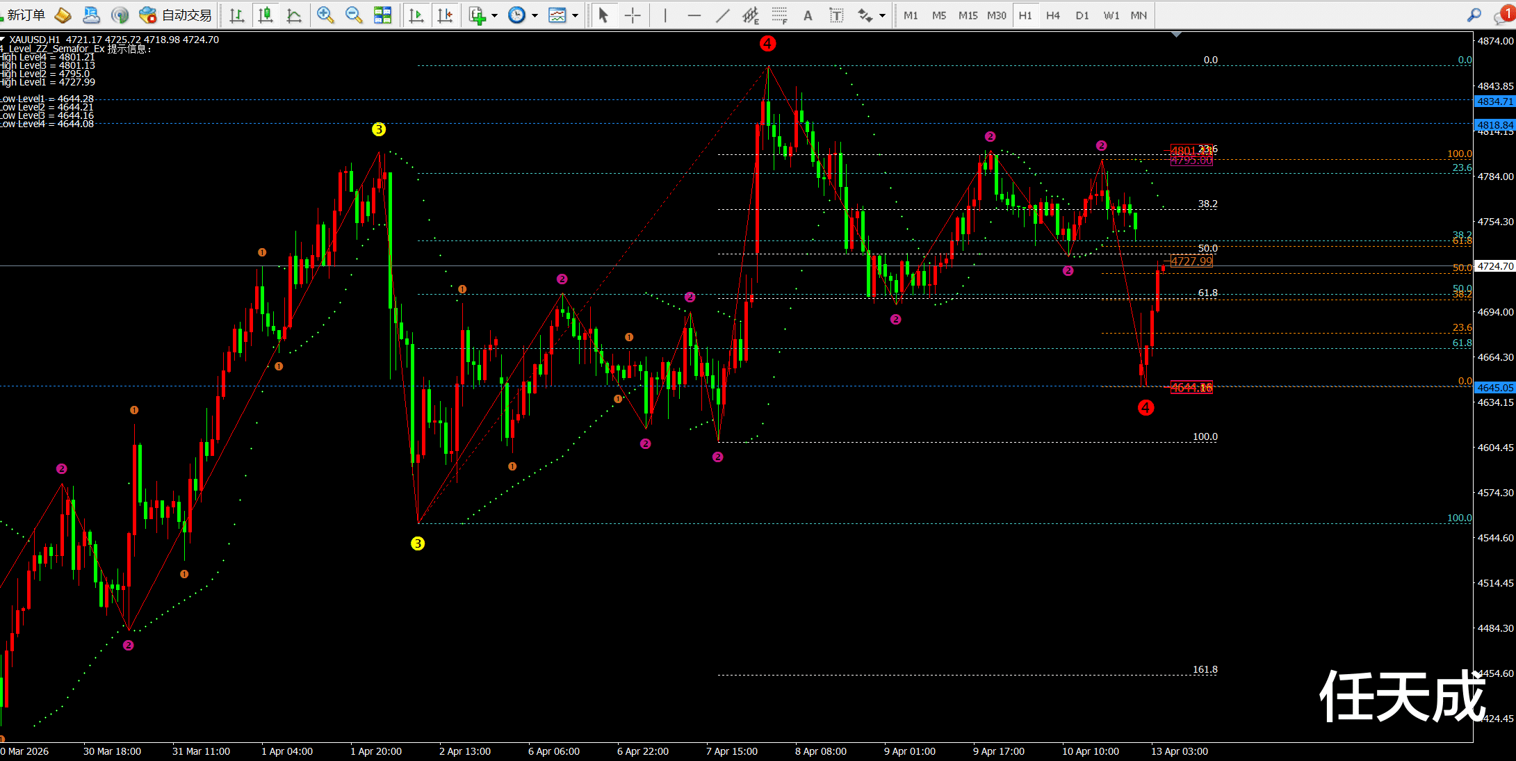 根据日线的斐波拉契回调线看:目前价格试探4742-4758一线,短期支撑4610附近强支撑4550一线。