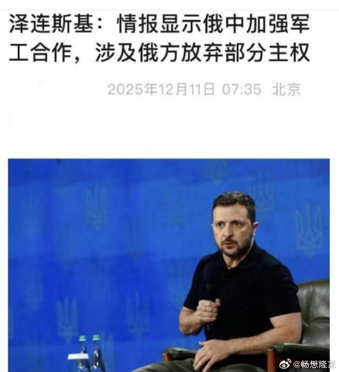 泽连斯基(2025年12月10日)在社交媒体X平台发文声。"俄罗斯部分领土主权正日益向中国倾斜",并称这是"在俄罗斯历史上从未如此大幅度向中国或任何更强大的国家让渡主权"的行为。