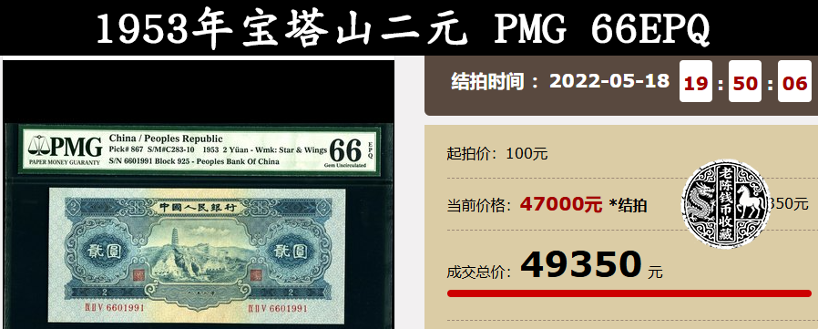 今天的主角,也就是上面这一张,在现代钱币月拍中,以49350元的价格被拍出。