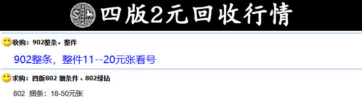 整捆、条的80年和90年2元报价分别在18元和11元一张,价值高低立见高下了。