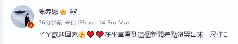 陈乔恩则动情地表示:在车上看到这个消息时差点哭出来。