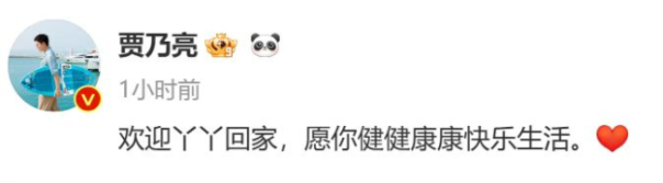 黄晓明与舒淇都热情表达“欢迎回家”,贾乃亮还祝丫丫以后能够健健康康快乐生活。
