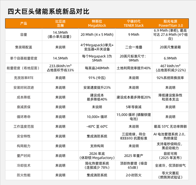 行业竞争:储能巨头的高密度竞赛比亚迪并非是唯一在追求能量密度提升的企业。今年以来,宁德时代、阳光电源、特斯拉也陆续推出新一代大容量储能系统的解决办法。
