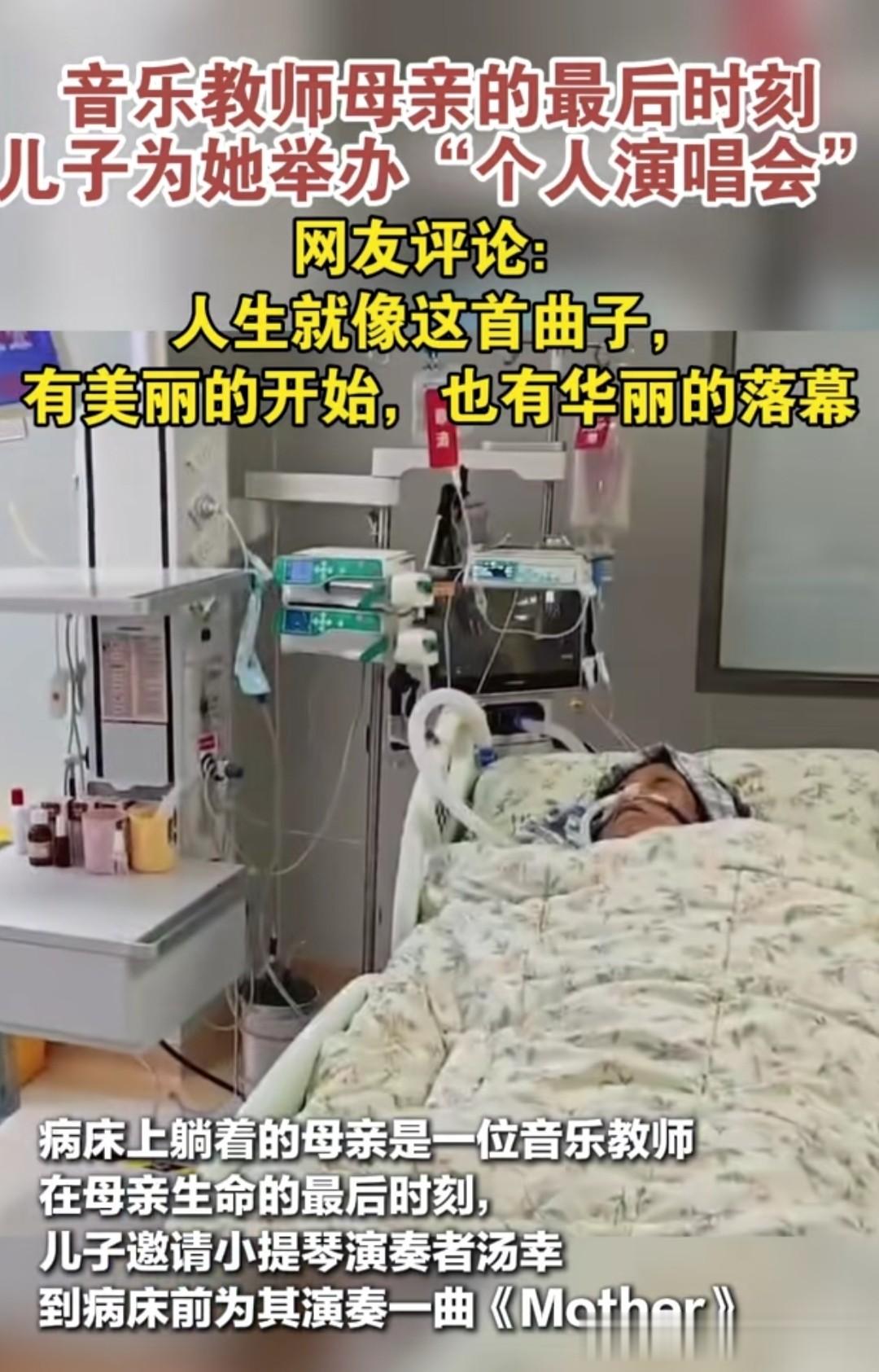 后来视频传到网上,很多人看哭了,说这就是“送别的曲子”。可他心里明白,自己不是为了送别,是想留住母亲的希望。可人算不如天算。元旦那天,母亲又陷入昏迷。看着她痛苦的样子,他终于问出口:“妈,你是不是想解脱了?如果是,就眨两下眼睛。”母亲真的眨了两下。他征求了亲戚意见,大家都点头。他决定把母亲从ICU转回普通病房,陪她走一程。