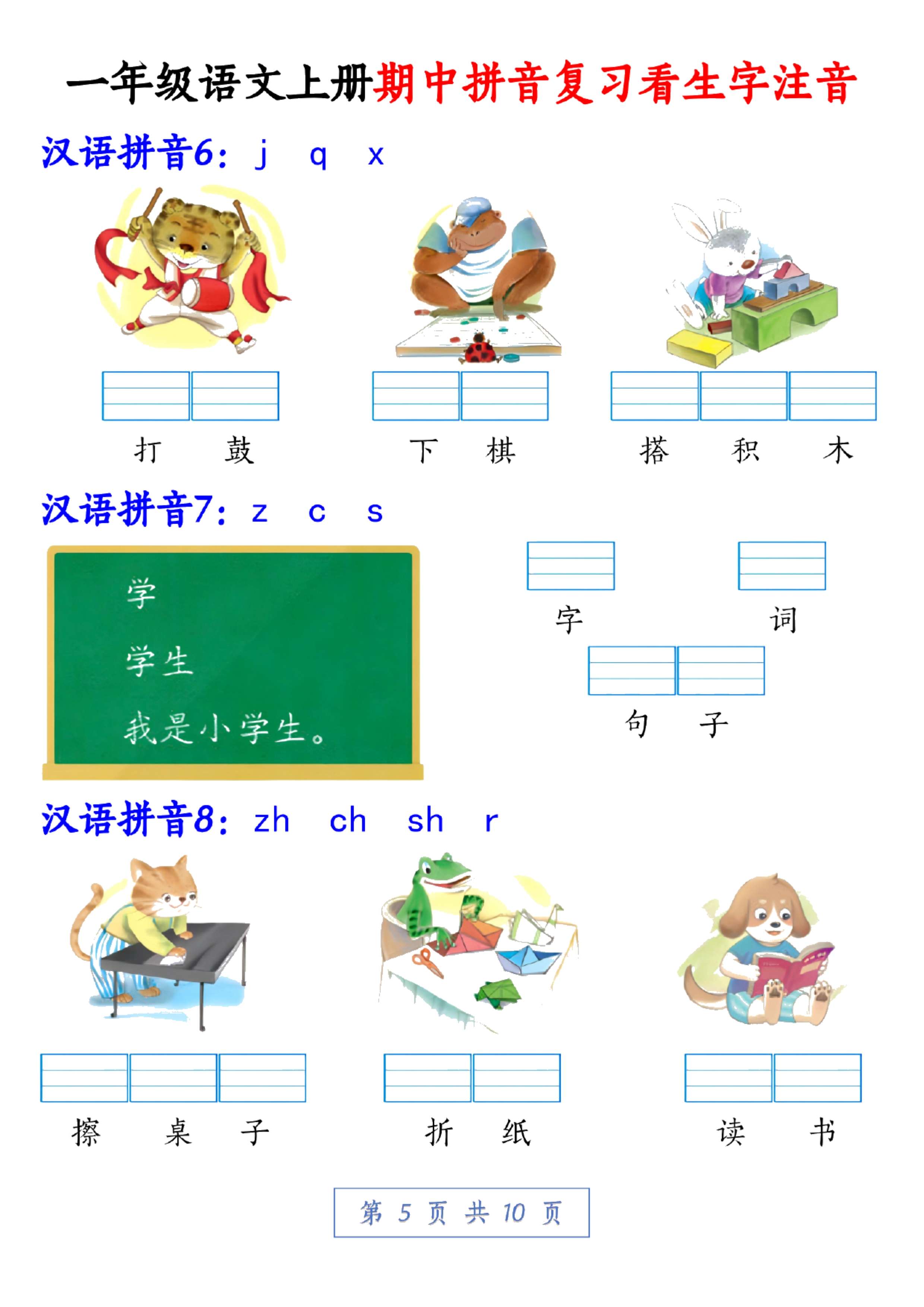 一年级的小朋友马上要期中考试了,拼音和生字复习是不是让你头大?