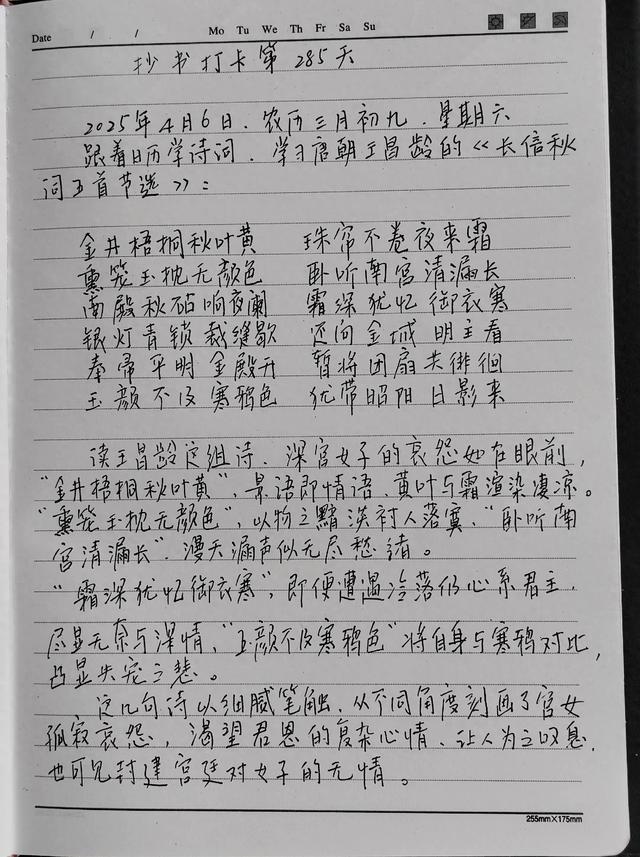 跟着日历学古诗词。祝福你在2025,每一天都如诗如画。今天学习/唐/王昌龄《长信秋词五首》(节选):