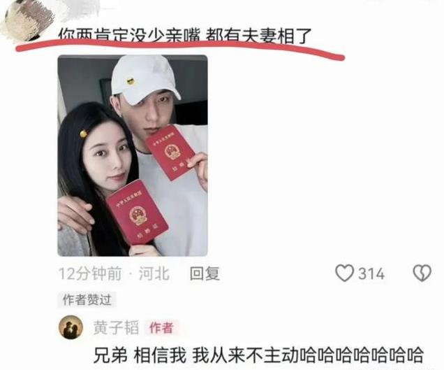 尤其是他还很认真的回复网友对于他们的祝福,当看到晒出两人合照,大赞越来越有夫妻相时,黄子韬还开始玩梗。