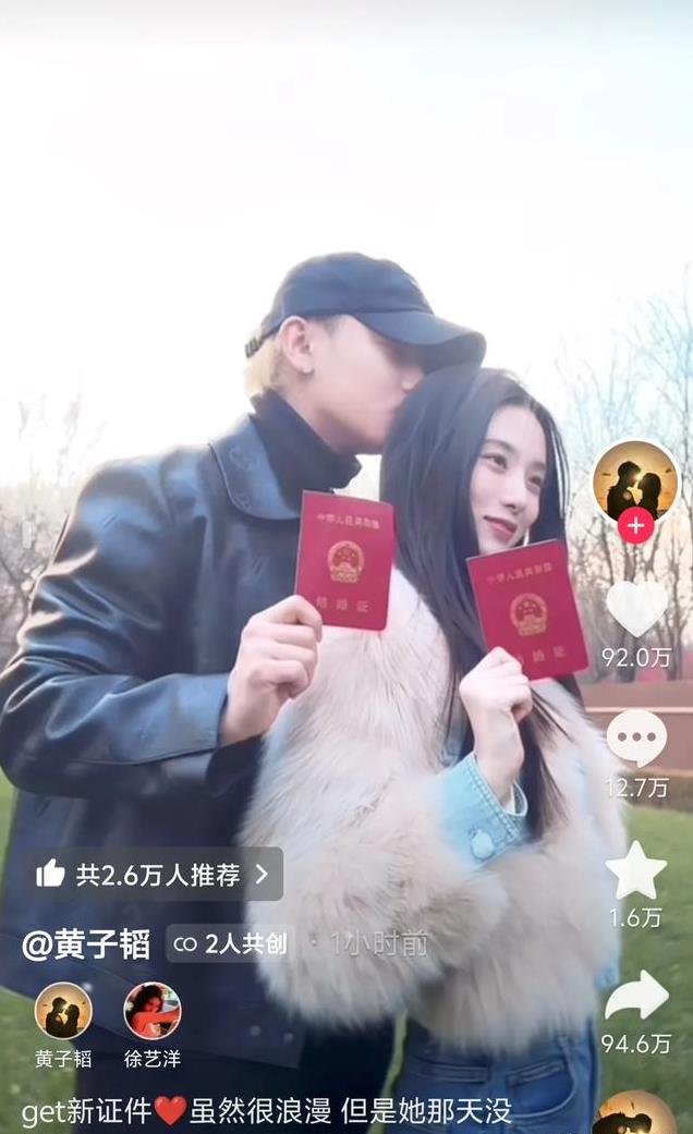 原来,是因为黄子韬卡点19:19高调晒跟徐艺洋的结婚证。