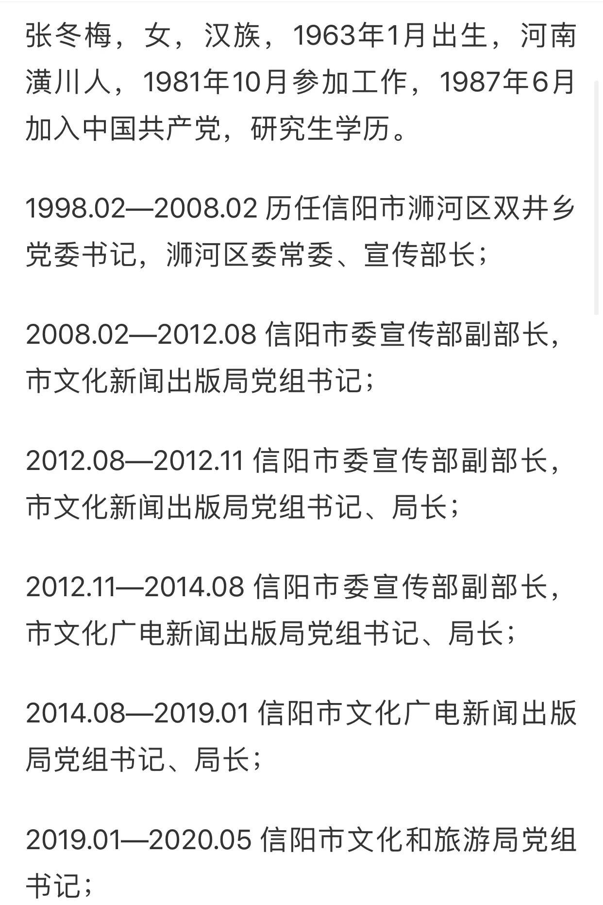 3月3日,河南省信阳市文旅局局长张冬梅涉嫌严重违法被带走,采取留置措施。