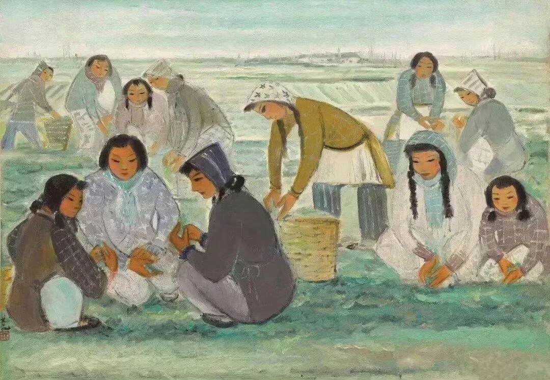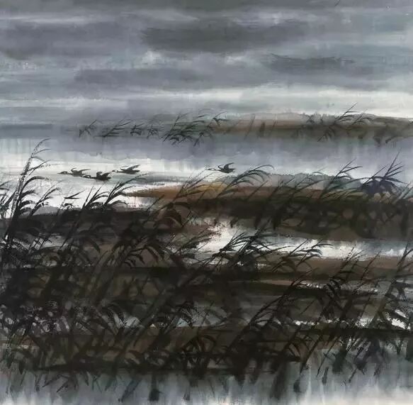 他的画里没有浓墨重彩的呐喊,只有和风细语的倾诉。仕女的愁不是大悲,是"剪不断理还乱"的轻;孤鹭的静不是绝望,是"独钓寒江雪"的定;秋色的寂不是萧瑟,是"万物静观皆自得"的悟。这种"藏",是经历过风雨后的从容:知道何时该乘风而起,把西方的色彩、东方的线条揉成新的笔墨;也知道何时该倚风而息,让画面留白,给心事留个角落。