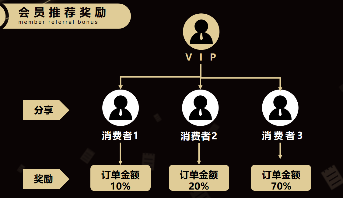 第二层(间上级推荐节点):获得订单金额的20%。这笔更高的奖励,其妙用在于激励VIP不仅要“自己卖”,更要“教人卖”、“帮人卖”,因为下级网络的销售成功,直接关系其自身收益。