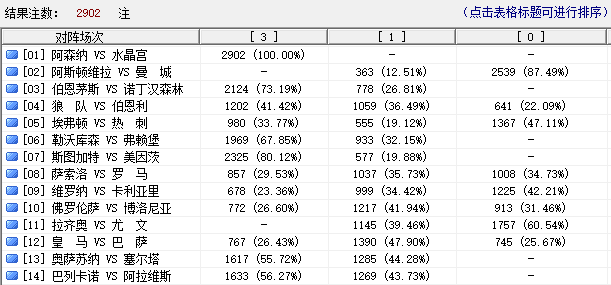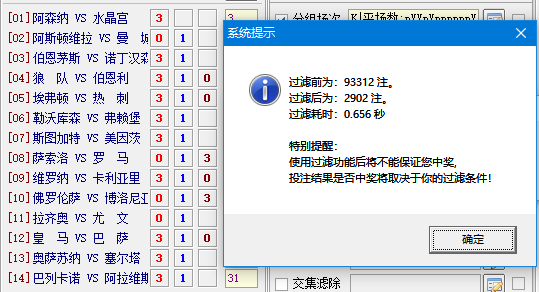 注数分布:分布倾向性是由个人设置条件控制倾向比例(条件的设置影响比例倾向,理论注数倾向要科学合理,比例尽量相对均衡),遵循旋转矩阵310数字排列组合。这里个人根本不去看盘口和赔率。