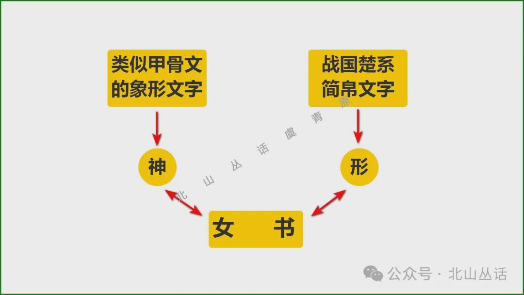 女书源自类似甲骨文的象形文字,在战国时期受楚系简帛文字影响较多,这奠定了女书文字形神兼备的核心基础。
