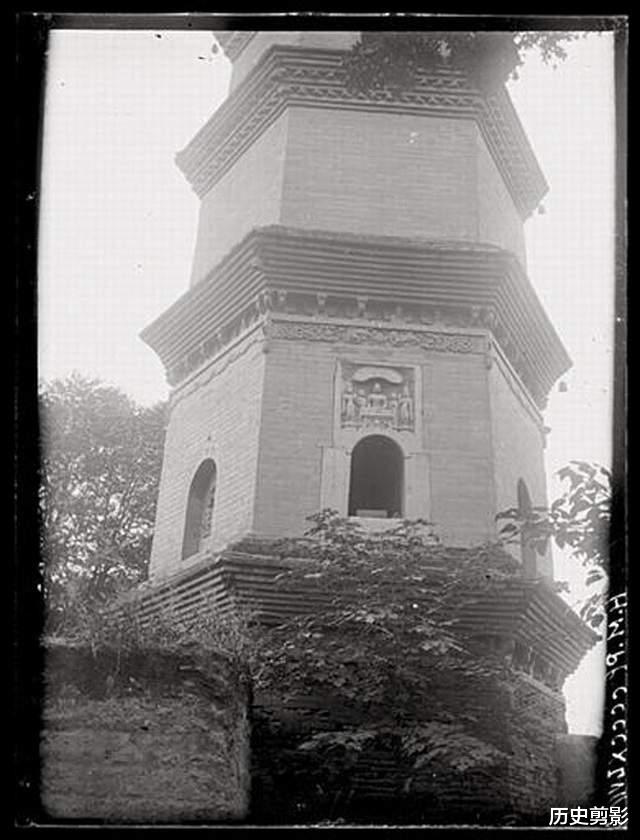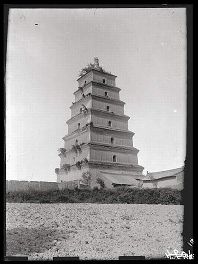 大雁塔青砖塔身已生草木,是 “关中八景” 里 “雁塔晨钟” 的百年前模样。