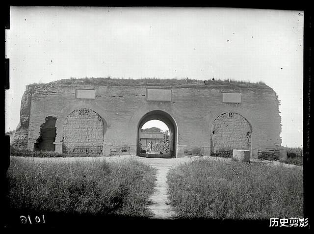 西安府古城门残迹,门洞与城墙上的碑匾已斑驳,荒草间显露出古都的沧桑