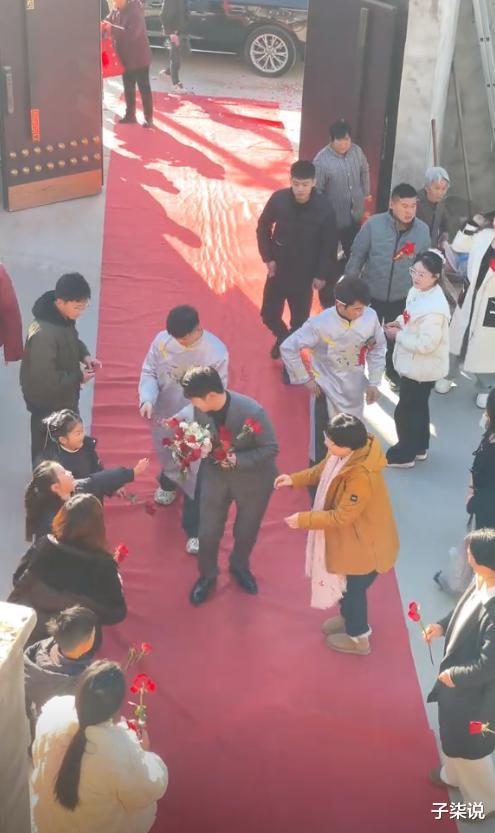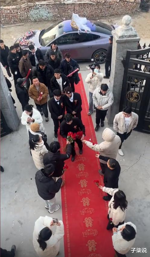 直接开始反向操作,不仅不堵门,直接把门大开;亲朋直接列队欢迎新郎进来。